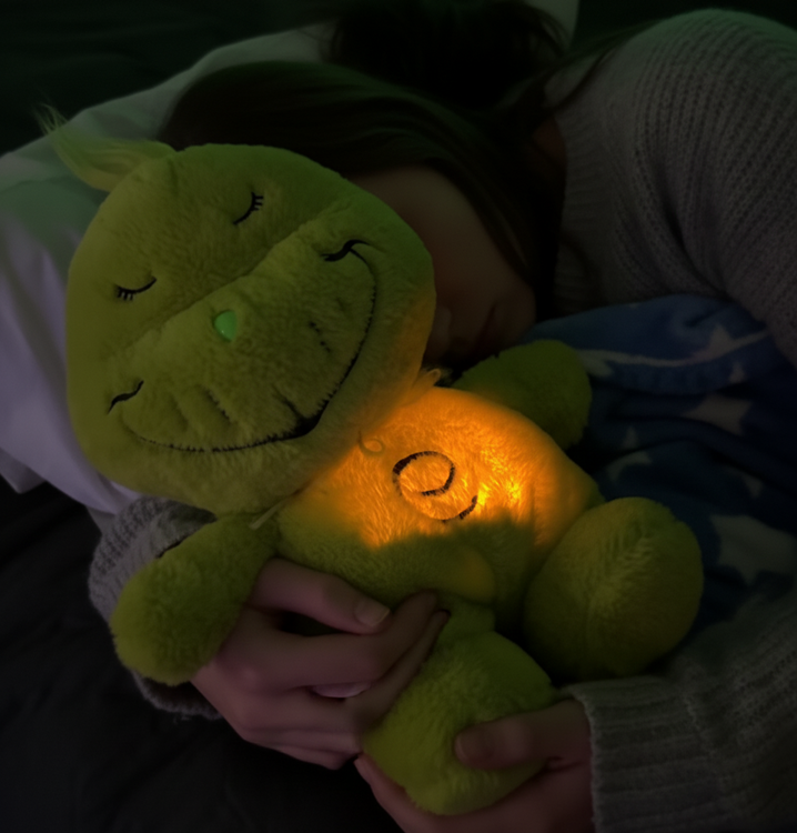Gentle inhale-exhale cycle encourages synchronized breathing, promoting relaxation. Soft warm LED glow serves as a cozy night-light. Premium velvet plush exterior feels silky smooth, and battery power provides 20–30 hours of continuous runtime. Easy spot-clean design ensures hassle-free maintenance.